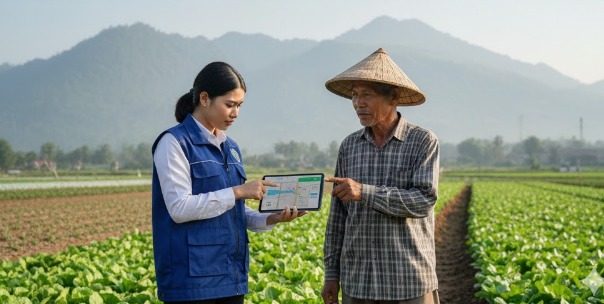| Informasi: Lahan aktif, petani, jenis/usia/status tanaman, jadwal, panen. Sistem trajektori lahan, Pendaftaran petani, Pengairan otomatis, Sistem Peringatan. |